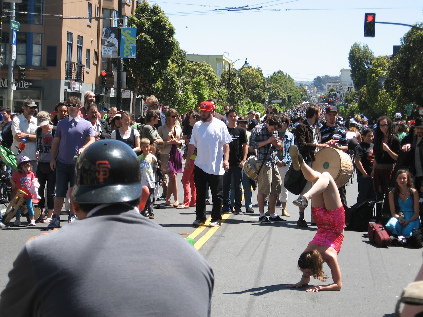 We traveled the whole length of the street fair, stopping to watch performances, including this cabaret/acrobatics group, and the obligatory bathroom & snacks stop. We were very sad when the party ended with a police sweep and a return to normal traffic.