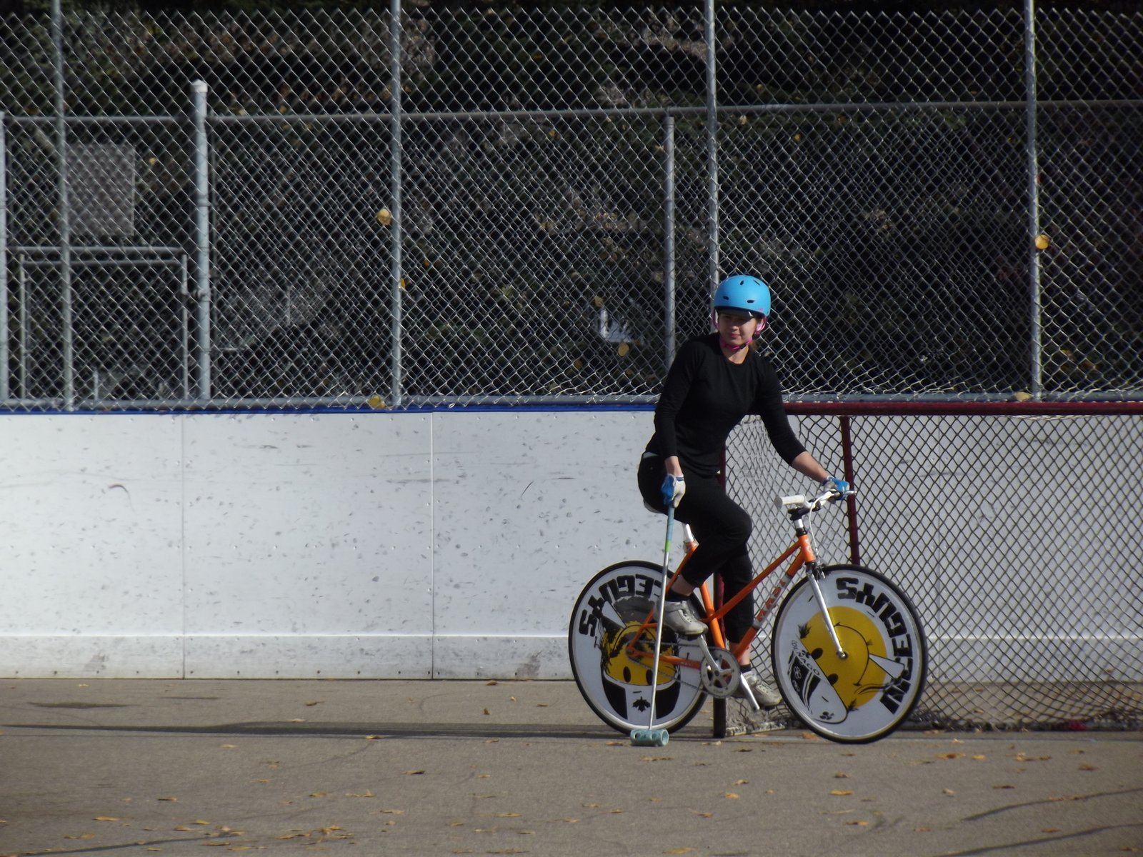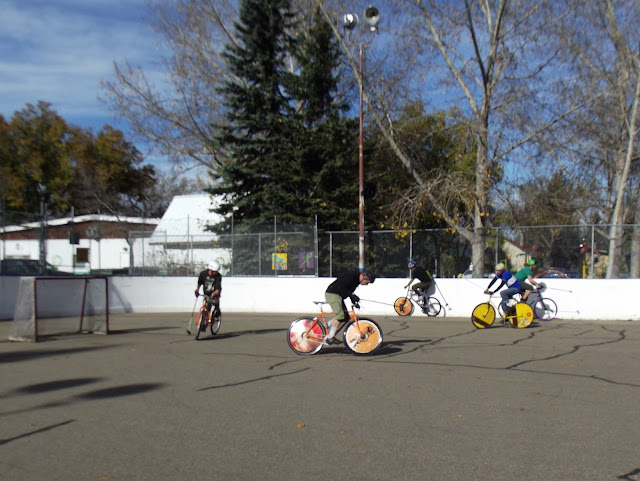Turned out I had dressed too warmly, based on the morning's cooler weather. I also discovered on my ride that Miss Trudy, who I only ever ride with the kids, has an issue with her higher two gears. (I brought Trudy, the '72 Phillips, today because I haven't taken Eliza for new tires yet.) The rad hoodies and tshirts are for sale BTW. Swing by tomorrow to watch the rest of the tournament. |
